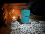 A journal designed for D&D and other table top RPGs, measuring 6 inx8.25 in. This journal includes a dry-erase section for character sheets, 48 slots for spell or item cards, 56 pages of dot-graph paper, and 36 pages of high-quality sketch paper, and elastic binding for removeable and refillable pages, all in one item for a fun and organized gaming experience.
